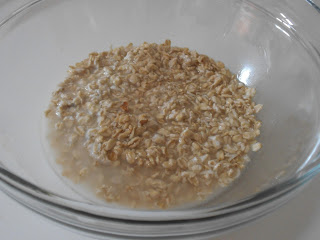 Coloco os flocos de aveia numa taça com água e deixo de molho durante o dia (ponho os flocos a demolhar de manhã antes de sair de casa e faço o leite ao final do dia). A receita original diz, no mínimo, duas horas.